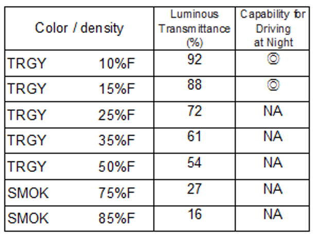 - Whether Night Driving is Allowed is Determined not by “Color Density” but by “Luminous Transmittance!”