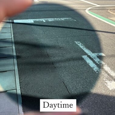 We checked the difference in how “road signs” and “white lines” look while driving during the daytime and at night with colors below.