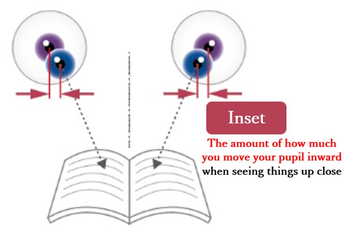 Inset refers to the amount of how much you move your pupil inward when you see things up close.