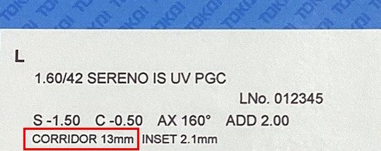 Although it varies by product, our progressive lenses are available in various corridor lengths, such as 9mm and 11-17mm.