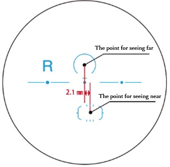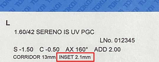 For instance, in the case of “inset 2.1mm,” the center of the area for seeing near is designed to be positioned 2.1mm inward from the center of the area for seeing distance.