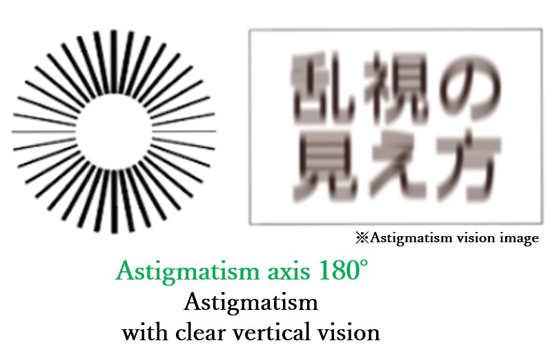 For example, when the astigmatism axis is at 180°, vision is clearer in the vertical direction but blurred in the horizontal direction.