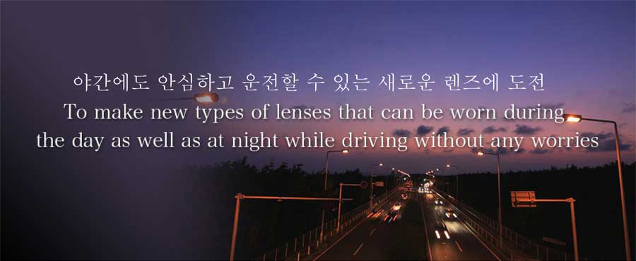 이러한 눈부심을 해소해드리기 위해 야간운전에 적합한렌즈 개발에 착수하였습니다.
